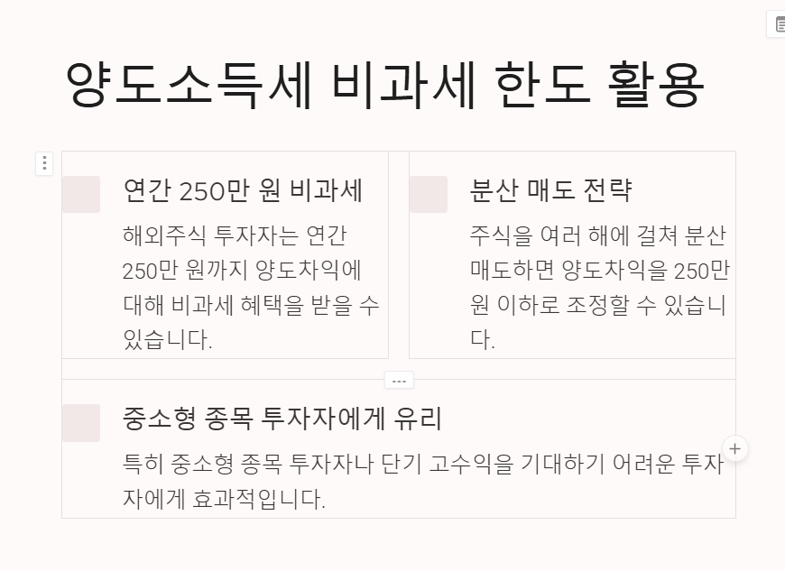 다양한 주식을 보유한 경우, 고수익이 예상되는 주식은 신중히 분산 매도를 고려하세요. 적절한 매도 타이밍을 설정하면 비과세 혜택을 극대화할 뿐만 아니라 전체 포트폴리오의 수익 구조를 개선할 수 있습니다.
